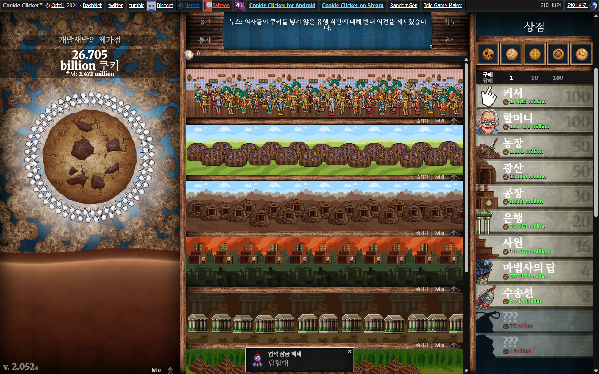 난 처음엔 커서로 쿠키 벌다가 할머니를 살 수 있게 되면 커서를 팔고 할머니를 사고