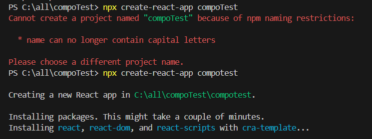 application 만들기에 성공했다. vue에서의 과정과 같이 폴더 이동해서 실행하면 됨