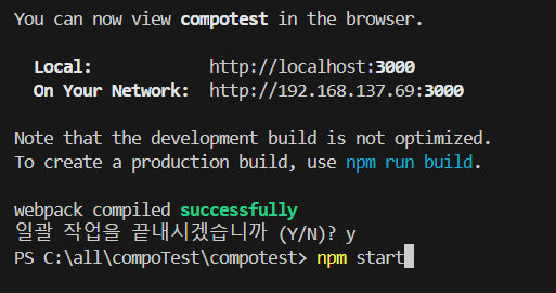 종료는 Vue랑 똑같이 터미널에서 ctrl+c 하면 된다.