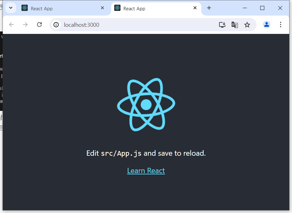 시작은 리액트 앱이 설치된 폴더에서 npm start